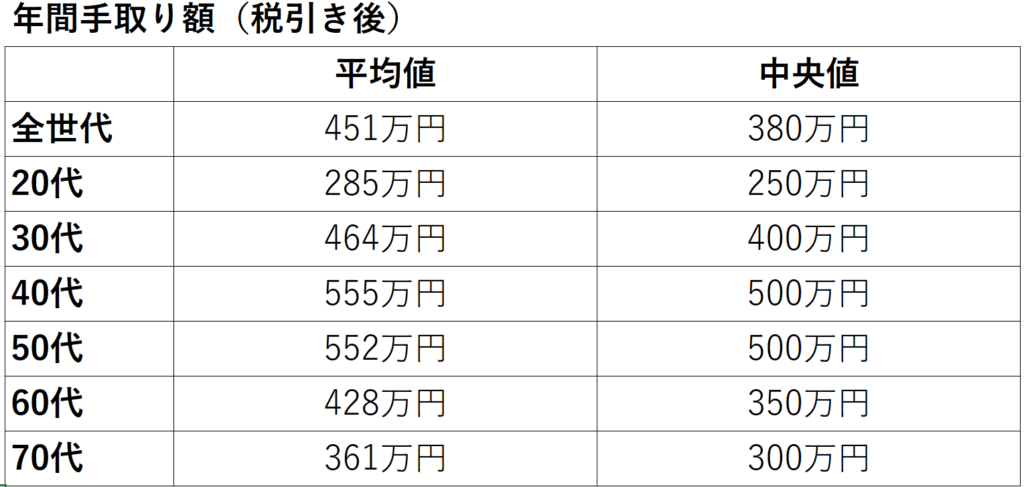 平均値:451万円 中央値:380万円 となっています。