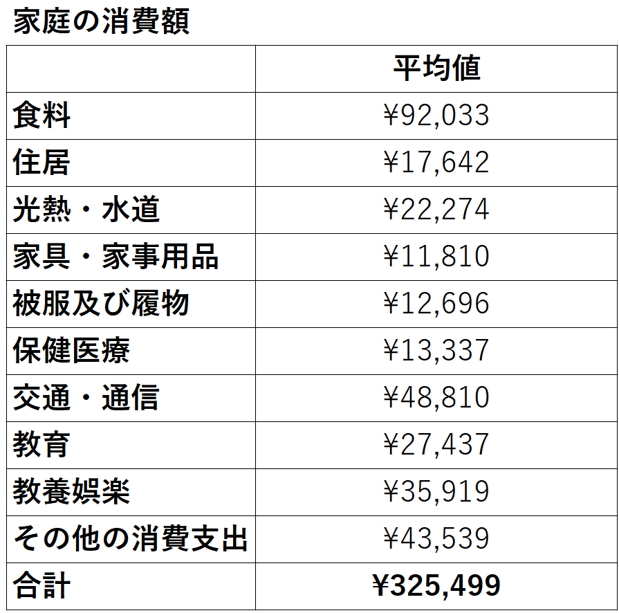 総務省が掲載している資料によると、平均値は下記の通りとなります。(4人家族)